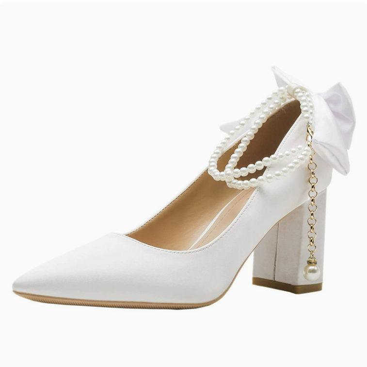 Silk satinSynthetic soleHeel height: 7.5cm, 5cmColor: white