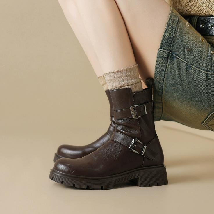 Faux leatherSynthetic soleHeel height: 4.5cm heelColor: brown, black