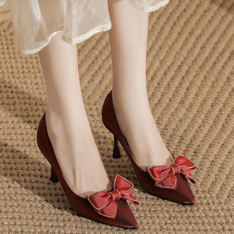 Silk satinSynthetic soleHeel height: 10cm, 7.5cm, 5cmColor: black, white, champagne, wine