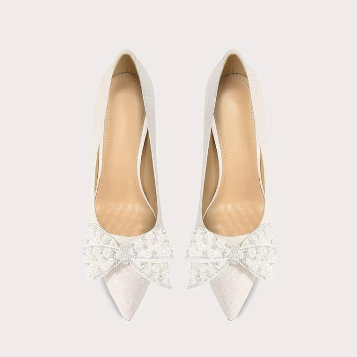 Glitter material upperSynthetic soleHeel height: 10, 8, 6, 3cmColor: off white