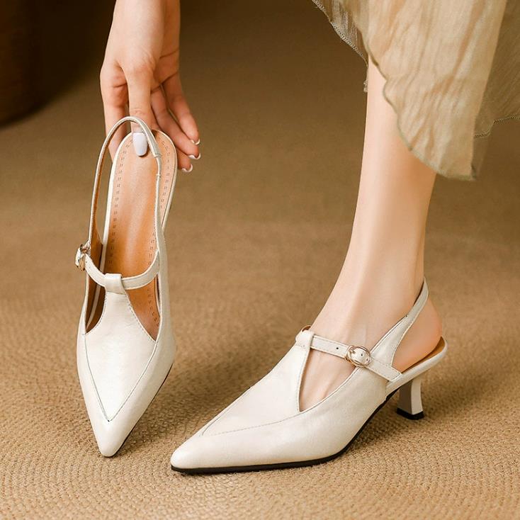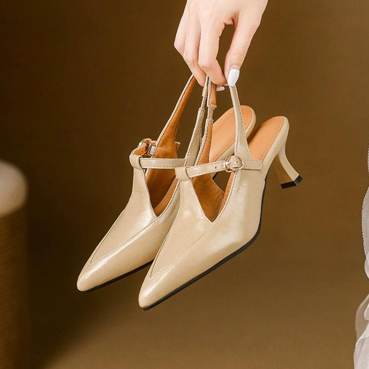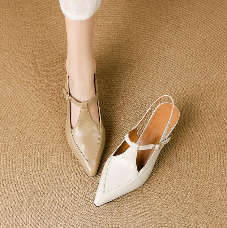 Faux leatherSynthetic soleHeel height: 5cmColor: tan, off white