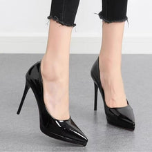 Faux patent leatherSynthetic soleHeel height: 9.5cm, 1cm platformColor: beige, white, black